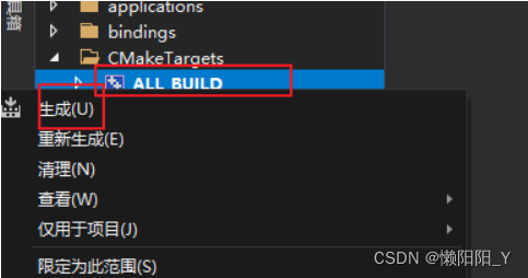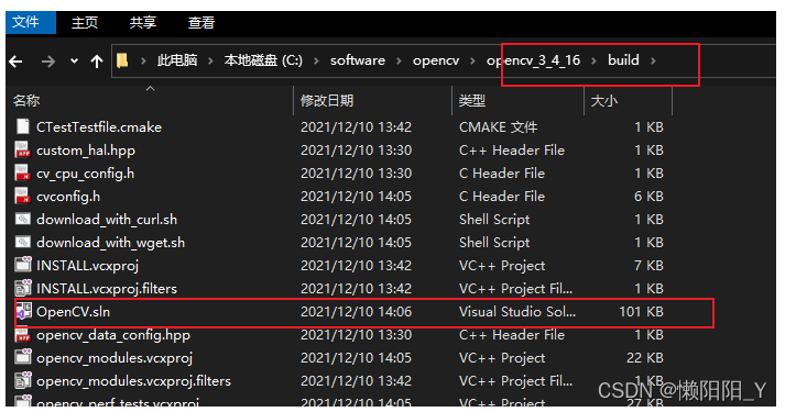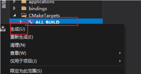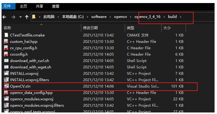 如果产生错误,打开生成文件的build文件夹,选择OpenCV.sln打开。