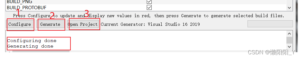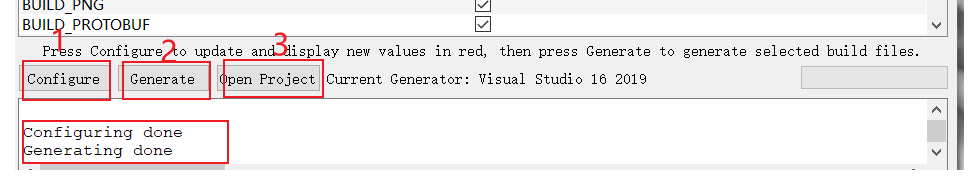 然后再点Configure,点击Generate,完成(Generating done),点击open Project