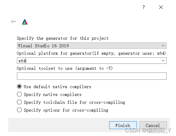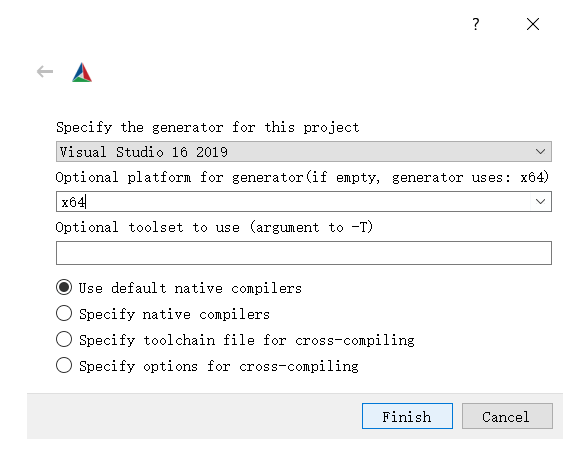然后点击 Configure,选择自己使用的编译器,点击Finish,然后等待配置完成。