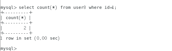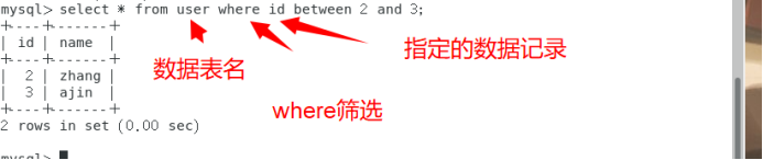 或者使用命令select * from user where id >2 and id < 3;也可以实现。