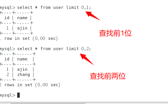 注:limit函数前一个数字是从多少位开始,第二个数字是查找多少位