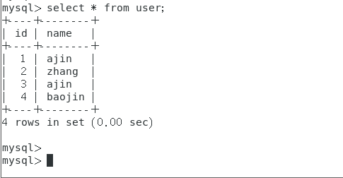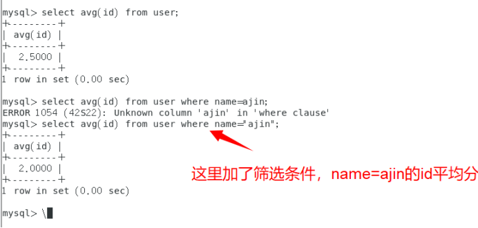 命令:select avg(id) from user where name="ajin";