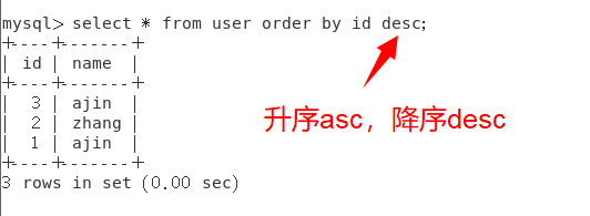 5、以id降序查询user表