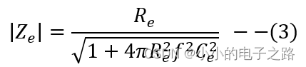 其中该阻抗由电阻Re与电容Ce组成,其阻抗值可以表示为