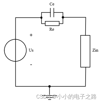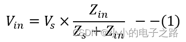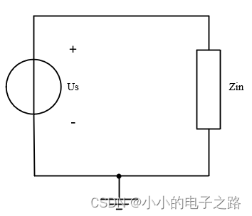 假设一个电路的输入阻抗为Zin,该电路采用电压源供电,实际电压源总存在内阻Zs,因此,整个电路可以简化为下图所示的电路: