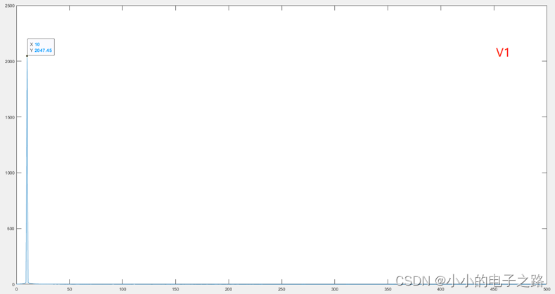 经过测量可以得到输出信号V1、V2的频谱,如下图所示,可以看出:V1=2.047mV、V2=1.339mV。根据公式(4)可以得出该放大电路的输入阻抗