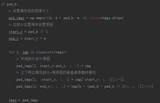 先在竖直方向上进行填充,填充后,将原图置于中间,顶部和底部使用原图的镜像进行填充。