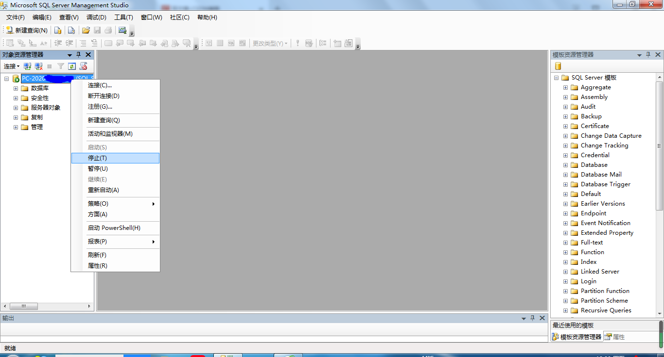 13、选中服务器,右键,选择停止。