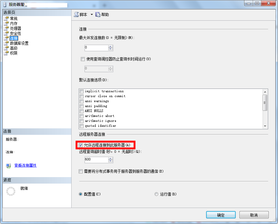 12、切换到“连接”选项卡,选择允许远程连接到此服务器,然后点击确定。