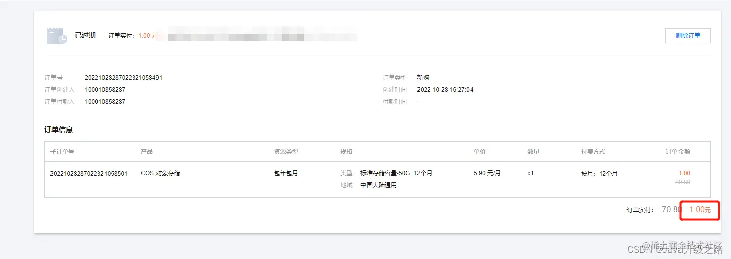 因为我的是腾讯云的服务器,所以就直接开通了腾讯云的COS对象存储。这篇文章就来记录一下,SpringBoot整合腾讯云COS对象存储实现文件上传的。