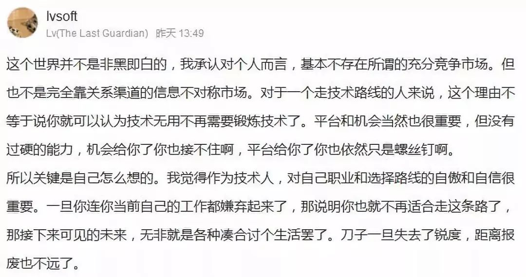 观点二:“没有过硬的能力,机会给你了你也接不住啊,平台给你了你也依然只是螺丝钉啊。”