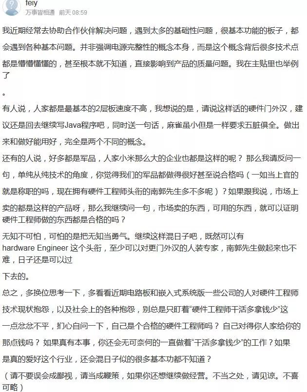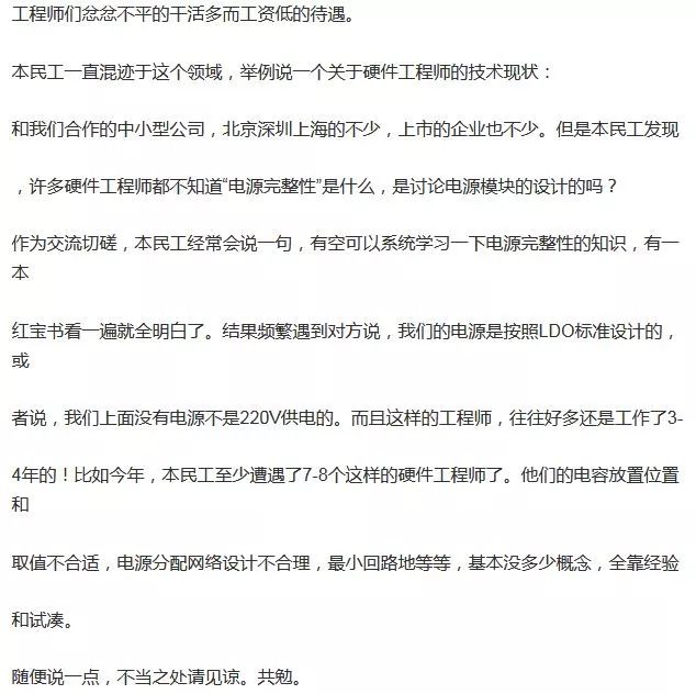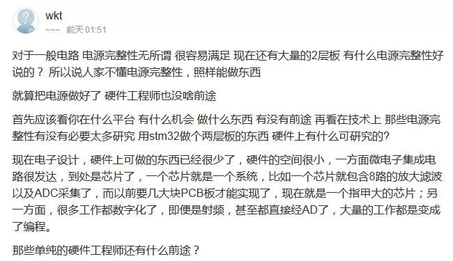水木社区几位工程师最近对“硬件工程师的技术现状”表达了一些自己的观点。