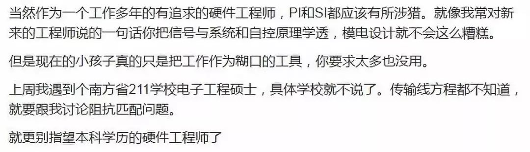 “很多硬件工程师就是这种现状,深入研究就不行了”。