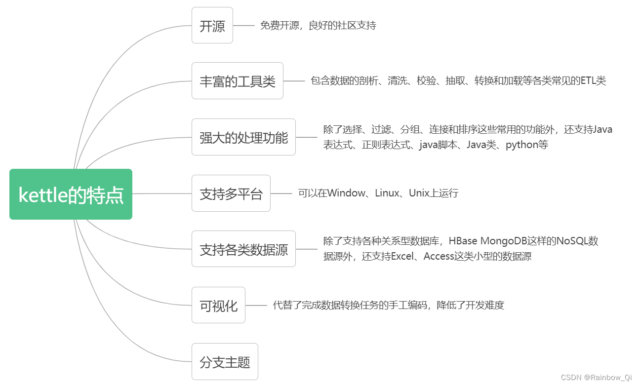 - 转换是ETL解决方案中最主要的部分,它负责处理抽取、转换、加载各阶段对数据行的各种操作。转换包括一个或多个步骤,如读取文件、过滤输出行、数据清洗或将数据加载到数据库。