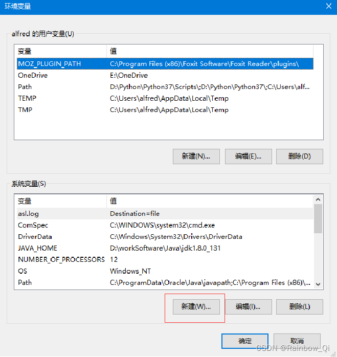 在“编辑环境变量”弹框中,点击“新建(N)”按钮