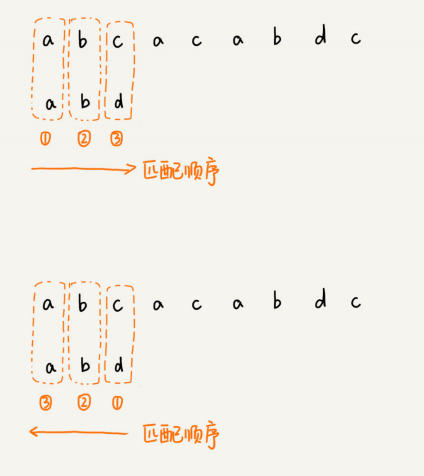 在不考虑效率的情况下,这两个操作都可以用很“暴力”的匹配查找方式解决。但是,如果 想要 BM 算法的效率很高,这部分就不能太低效。如何来做呢?