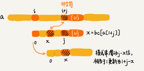 如果在模式串中找不到好后缀{u}匹配的另外的子串,就直接将模式串滑动到好后缀{u}的后面。