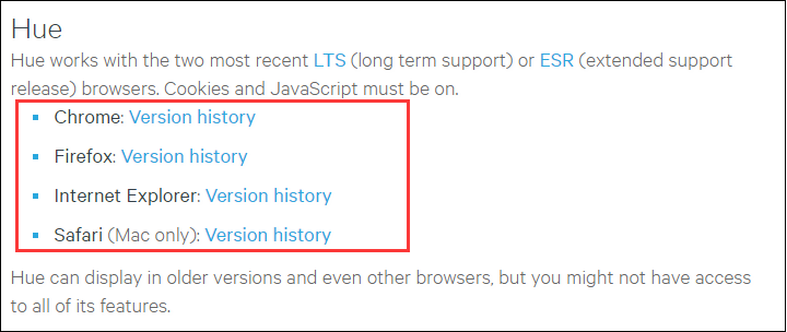 Hue | 5.5, 10 | 5.7, 5.6, 5.5, 5.1 See Note 6 | Default | 9.4, 9.3, 9.2, 9.1. 8.4, 8.3, 8.1 See Note 3 | 12c, 11gR2 | – |