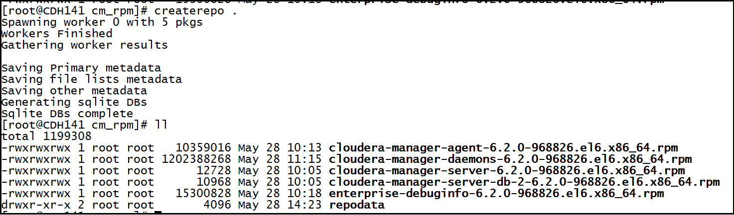 进入到上传CM的rpm文件的文件夹中,生成RPM元数据: