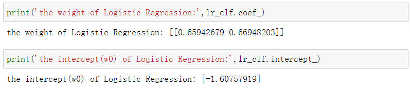print('the weight of Logistic Regression:',clf.coef_)## 查看其对应的w0