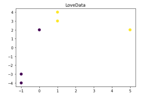 x_fearures = np.array([[-1, -3], [-1, -4], [0, 2], [1, 3], [1, 4], [5, 2]])