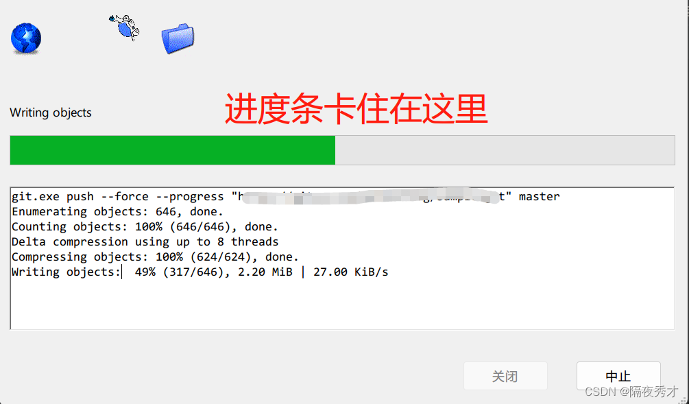 第三次推送才顺利完成,暂时不管它了,以后遇到再细究。