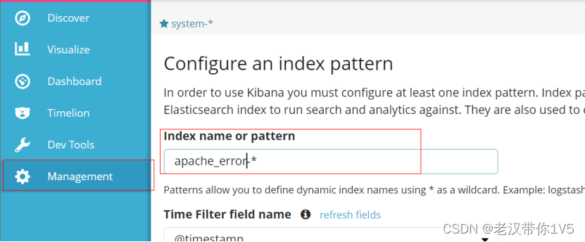 首次登录创建一个索引 名字:system-* ##这是对接系统日志文件