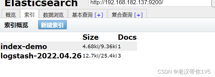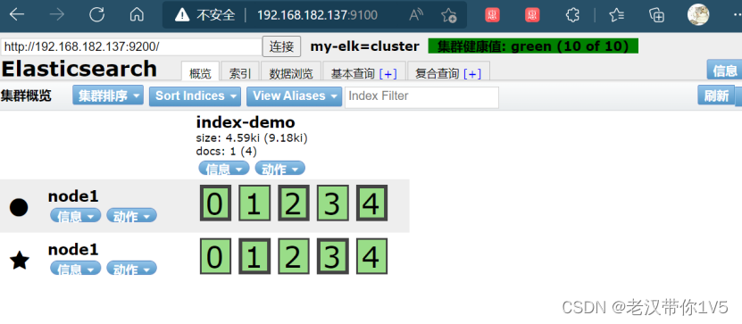 打开浏览器 输入http://192.168.182.137:9100/ 查看索引信息###