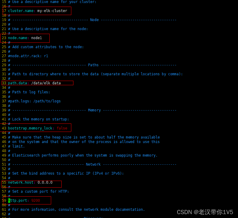 [root@localhost ~]# vi /etc/elasticsearch/elasticsearch.yml ####下面配置文件,插末尾##