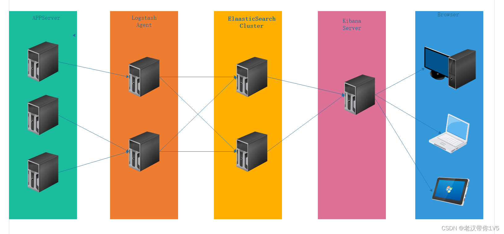 Kibana则从ES集群中查询数据生成图表,再返回给Browser。简单来说,进行日志处