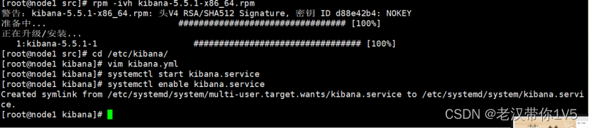 [root@node1 src]# rpm -ivh kibana-5.5.1-x86_64.rpm