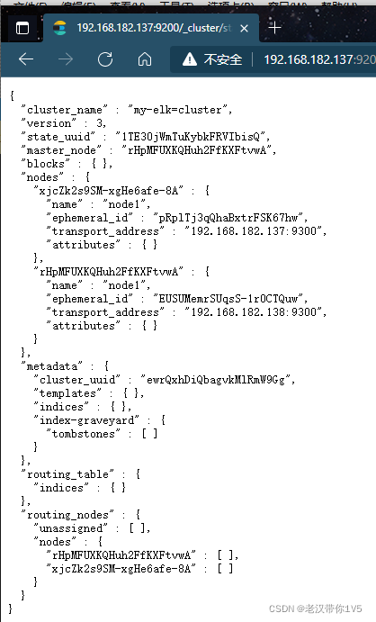 在Elasticsearch 后面的栏目中输入http://192.168.182.137:9200