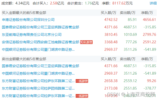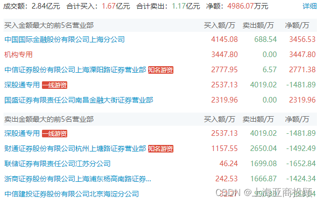 ③南山控股(002314),净额买入4986万元,所属板块:房地产开发。上榜原因:日涨幅偏离值达7%的证券。1、消息面上,11月28日,证监会发布房地产行业股权融资方面调整优化措施,“第三支箭”落地。 2、公司是主营业务一家以现代高端仓储物流为战略性业务,以房地产开发为支撑性业务,以产城综合开发为培育性业务的综合性企业集团。主要产品是房地产业务、仓储物流业务、制造业业务、产城综合开发业务。 3、公司把握行业发展趋势并抓住国内政策机遇,优化创新宝湾物流商业模式,逐步建立“募投管退”资产管理能力,积极推进资产证券化、物流基金、公募REITs(或类REITs)等工作,优化提升资产效益,打造业务滚动发展的资本闭环和可持续发展模式。 4、公司有参与中国香港方舱建设,公司全资子公司深圳雅致共签订隔离房订单合同金额约2700万元,占公司总体营业收入比重较小。