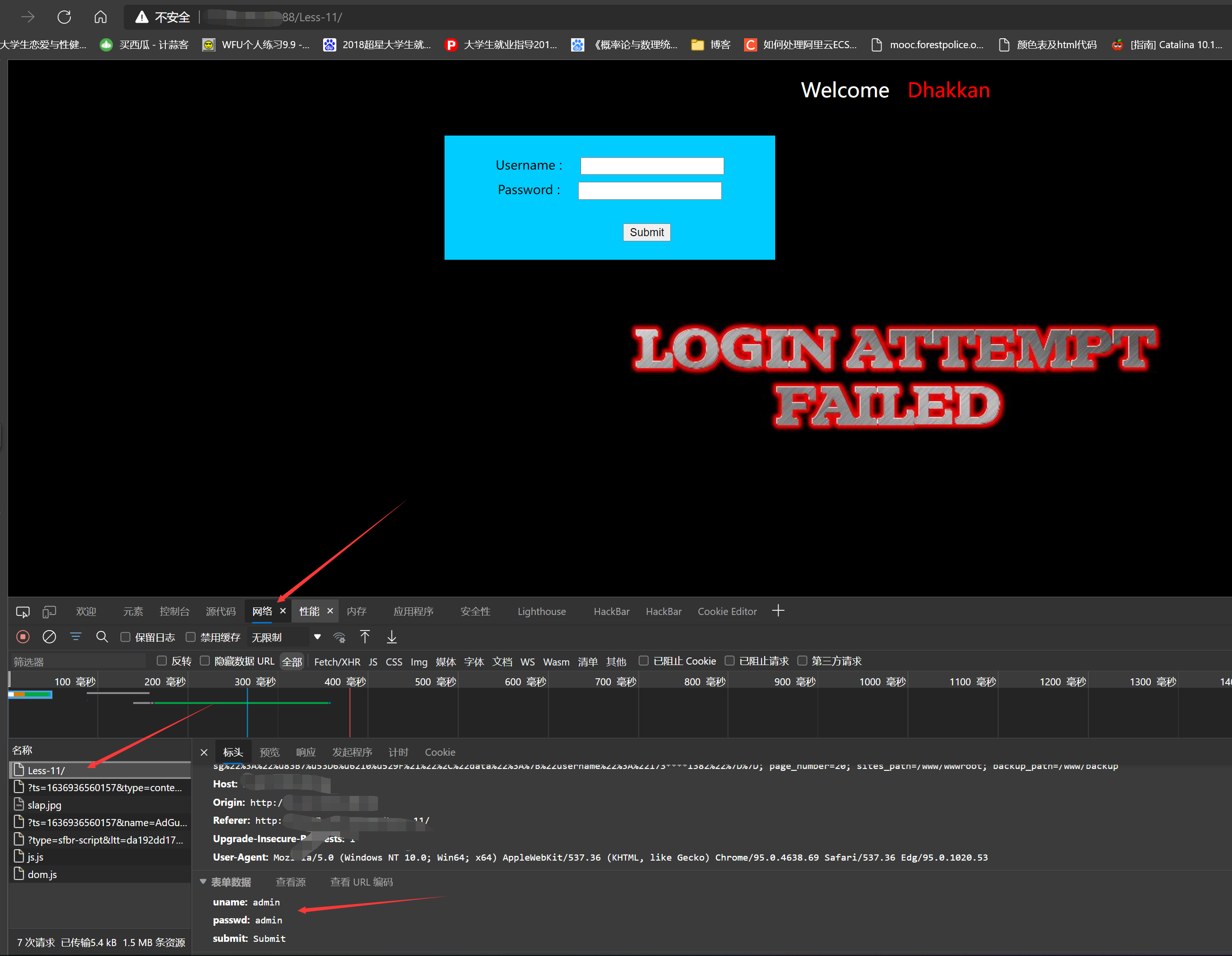 我们看见这时候浏览器这时候传过去uname为admin,passwd为admin的数据