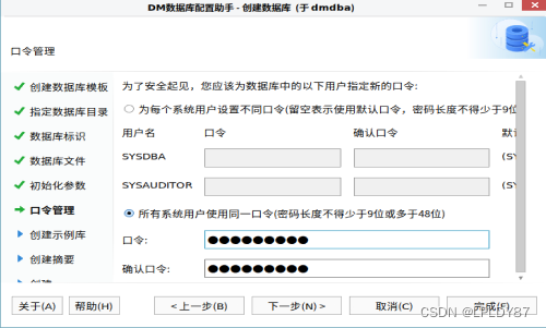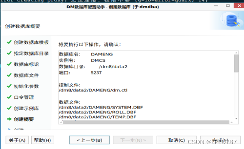 此页面显示所进行的配置信息,以便核对确认。点击完成
