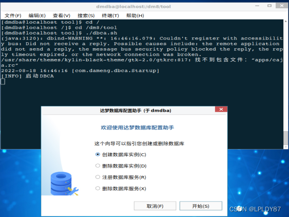 执行./manager 进入DM管理工具,改变端口进行登录测试。登录后进入管理服务器能看到实例DMCS就是新建的实例。