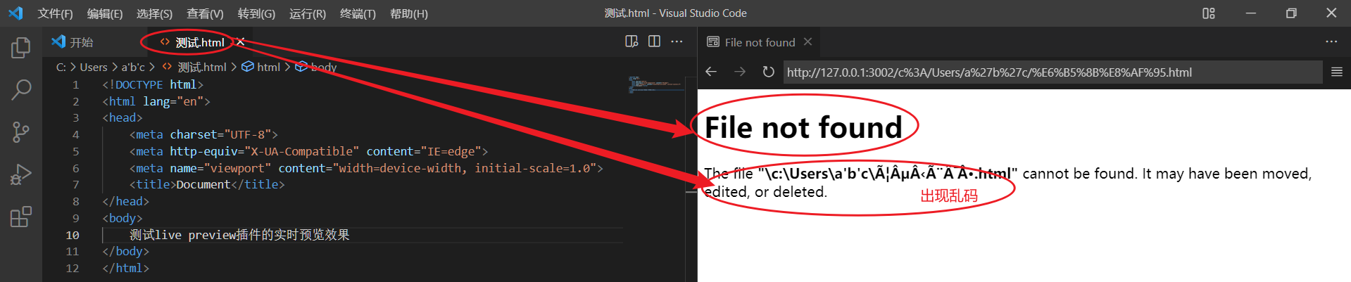 文件名的设置不能是中文,否则preview插件无法正常读取文件内容,出现乱码。