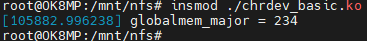 加载chrdev_basic.ko,可见分配到的主设备号为234