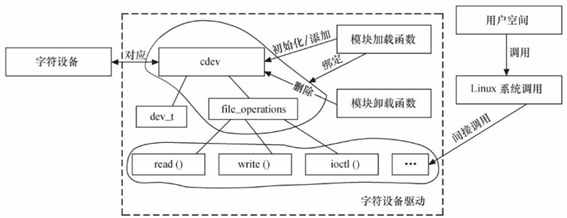 字符设备上层没有类似磁盘的ext2等文件系统,所以字符设备的file_operations结构体需要由字符设备驱动程序提供,这正是字符设备驱动的核心