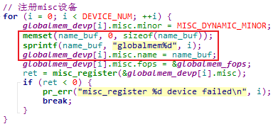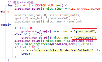将上一章的示例程序修改为misc设备,需要对如下函数进行修改,