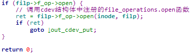open函数用于打开设备文件,通常在open函数中进行设备和数据结构的初始化