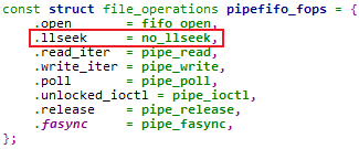 从调用关系中可见,如果llseek函数未被实现,当用户进行lseek系统调用时,最终会调用no_llseek函数,该函数会返回-ESPIPE,即该设备不支持seek操作