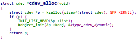 说明2:使用cdev_alloc函数可以动态申请一个cdev结构体,该函数会对cdev结构体中的部分成员进行初始化