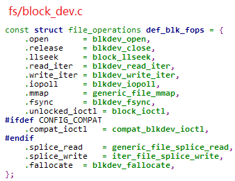 此时块设备的file_operations结构体使用Linux内核实现的def_blk_fops