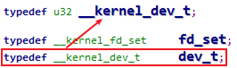 ② 设备号类型为dev_t,共32位。Linux内核设备号分为主设备号和次设备号,前者为dev_t的高12位,后者为dev_t的低20位。主设备号是与驱动对应的概念,同一类设备一般使用相同的主设备号;因为同一驱动可以支持多个同类设备,因此使用次设备号来标识同类的不同设备(序号一般从0开始)