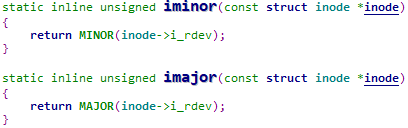 通过imajor和iminor函数则可以从inode中获取主次设备号,