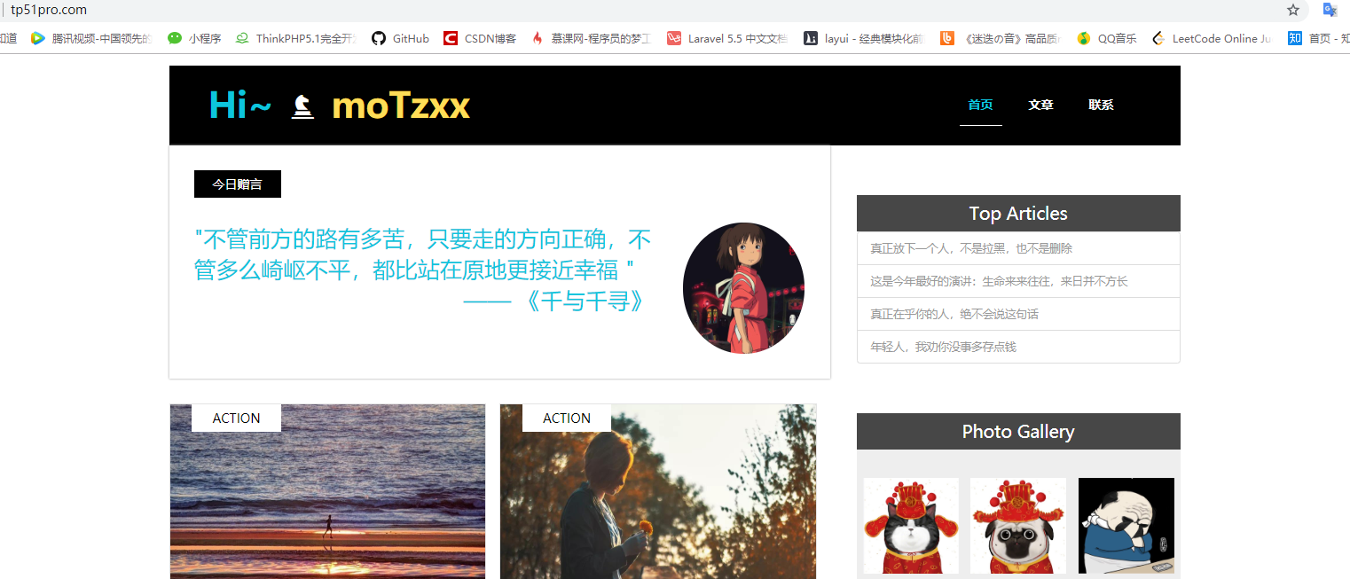 > 可以注意到: 当下流行的 ThinkPHP5.1 和 Laravel5.5 有着极为接近的设计理念;甚至同样的代码,仅仅稍作修改即能通用;例如: